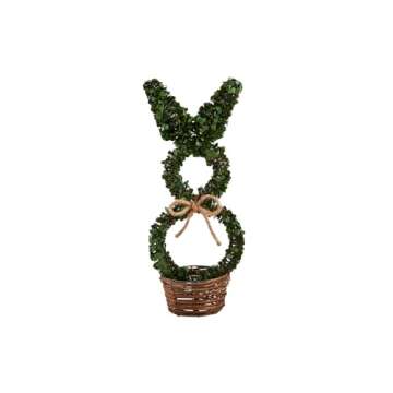 Show moreIntroducing the Mud Pie Boxwood Bunny Sitter, an enchanting and whimsical addition to your home decor that effortlessly integrates nature's charm into your living space. This stunning piece features a faux boxwood wreath in the shape of an adorable bunny, meticulously crafted to bring the outdoor spirit inside while adding a delightful twist to your seasonal decorations. The bunny's enchanting presence is further enhanced by a rustic jute bow, providing a quaint and cozy feel that complements various decor styles. With a sturdy rattan basket base, the Boxwood Bunny Sitter ensures long-lasting stability, making it a perfect option for display at home or as a thoughtful gift for loved ones. Measuring a generous 10 inches by 4 inches, this delightful bunny is the ideal statement piece for mantels, shelves, or even as a charming centerpiece on your dining table, inviting warmth and cheer to every occasion.
