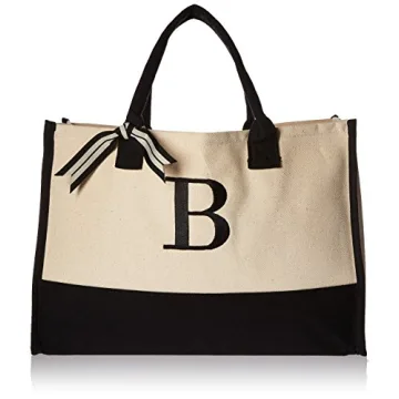 Show moreIntroducing the **Mud Pie Classic Black and White Initial Canvas Tote Bag** – a seamless blend of stylish functionality and personalization. Measuring a generous 17" x 19" x 2", this chic tote bag is crafted from **100% cotton** and is designed for everyday use, ensuring durability while making a fashion statement. Whether you're heading to the office, carrying items to a picnic, or shopping at the farmer's market, this tote will be your go-to companion. The unique addition of a monogram initial, like the letter "B", transforms this bag into a distinctive gift that makes every occasion feel special.