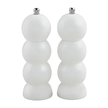 Show moreIntroducing the Mud Pie Classic Salt and Pepper Grinders, an exquisite fusion of functionality and elegance that transforms your dining experience. Crafted from high-quality lacquered wood, these grinders are not only durable but also serve as a stunning addition to any kitchen decor. Each grinder measures approximately 6.25" high by 2.25" wide, offering a comfortable grip for effortless seasoning while ensuring they fit beautifully on your dining table. The sleek white finish adds a modern touch, making these grinders a perfect centerpiece for your culinary creations. Enjoy the ease of hand washing to maintain their pristine appearance and elevate your meals with class and style.
