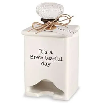 Why You Will Love This Product?: The Mud Pie Ceramic Tea Bag Caddy not only houses your favorite tea bags but also adds warmth and charm to your kitchen. With each cup you brew, you’ll enjoy the delightful ease of access and the visually pleasing design that complements your home. This caddy encourages you to take a moment for yourself, savoring each sip of your brew, all while knowing you have a stylish, durable companion by your side. Its unique character ensures that even on the busiest days, the small ritual of making tea brings pure joy.