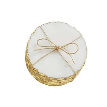 Mud Pie Foiled Coaster Set – Elegant White & Gold Coasters for Any Occasion