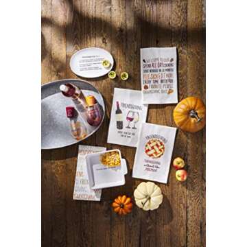 Show moreEmbrace the warmth and joy of the Thanksgiving season with the Mud Pie Friendsgiving Baker Set. This charming set is not just functional, but also a celebration of friendship and gratitude. It features a beautiful white ribbed ceramic baking dish that measures 8 inches by 2.5 inches, making it ideal for baking and serving up all your favorite holiday dishes. The front of the baker is adorned with the delightful phrase "Happy Friendsgiving" in bold black lettering, adding a heartfelt touch to any gathering. Also included is a stylish cotton hand towel, measuring 16.5 inches by 26 inches, decorated with the same cheerful "HAPPY FRIENDSGIVING" design in vibrant hues of orange, green, and white, perfectly complementing your table setting.