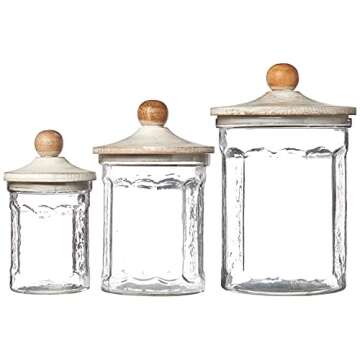 Mud Pie Glass Canister Set - Elegant Glass Storage with Wood Lids