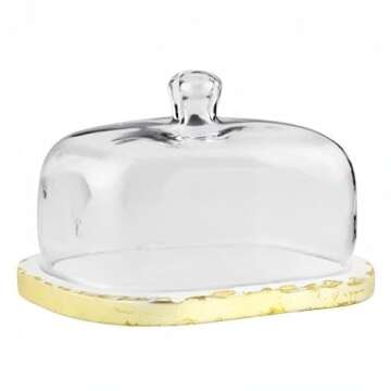 Mud Pie Gold Marble Glass Butter Dish, 4" x 6 3/4"