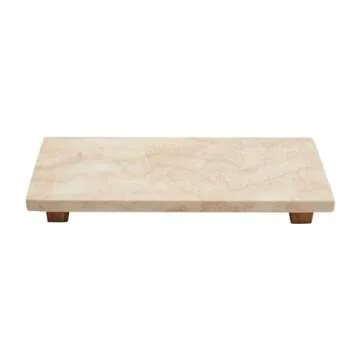 Mud Pie Large Travertine Footed Tray with Wood Feet - 4" x 11", Ideal for Serving & Décor