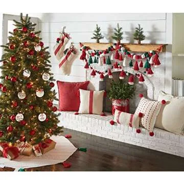 Show moreWelcome the festive spirit into your home with the exquisite Mud Pie Linen and Tassel Christmas Tree Skirt. Designed with charm and elegance, this high-quality tree skirt measures 54 inches in diameter, ensuring it fits beautifully under your tree. The delightful combination of white, red, and green hues adds a pop of color to your holiday decor, while the delicate tassel detailing creates a whimsical touch that is sure to captivate your guests. Made from durable linen, this tree skirt is not only stylish but also designed to withstand the joys of holiday celebrations, offering both beauty and practicality.