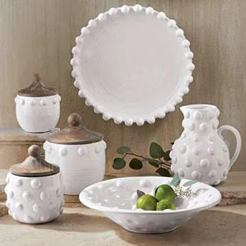 Mud Pie Raised Dot Centerpiece Serving Bowl - Generous White Glazed Terracotta
