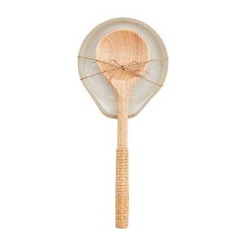 The wooden spoon is wrapped in water hyacinth for a natural and aesthetic look.