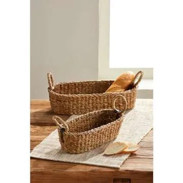 The Sea Grass Nested Bread Baskets are a set of two beautifully woven bread baskets made from seagrass