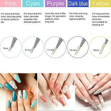 Show more Introducing our exquisite collection of DIY nail art brushes, designed for both professionals and enthusiasts alike! This phenomenal set includes a total of 10 pieces—5 premium nail painting brushes and 5 elegant nail liner brushes, offering you various sizes tailored to your artistic needs.