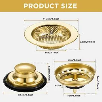 Show moreIntroducing the Mudder 3 Pcs Kitchen Sink Drain Strainer and Stopper, your new essential kitchen companion designed to elevate your culinary space! This set includes a high-quality sink basket, a versatile drain plug stopper, and an innovative drain strainer, all meticulously crafted to fit most standard 3-1/2 inch kitchen sink drains in the United States. Made from durable rustproof stainless steel, these items ensure optimal performance while providing excellent protection against stubborn clogs. Say goodbye to messy sink experiences and welcome a new level of convenience and elegance to your kitchen.