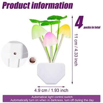 Mudder 4 Pcs Sensor Mushroom Night Lights LED Night Lights 7 Color Changing Plug-in Light Sensor Wall Lamp for Adults Bedroom, Bathroom, Christmas Party Gift(Lotus Leaf Style)