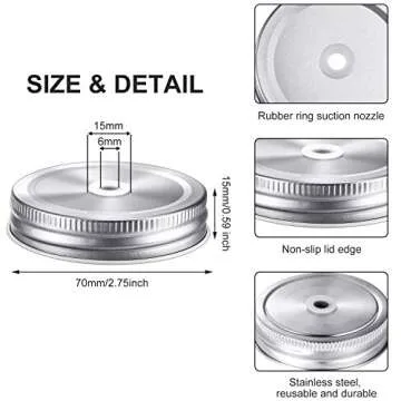 Mudder 8 Pieces Metal Regular Mouth Mason Canning Jar Lids with Straw Hole Leak Proof Reusable Jar, 2.7 Inch (Silver)