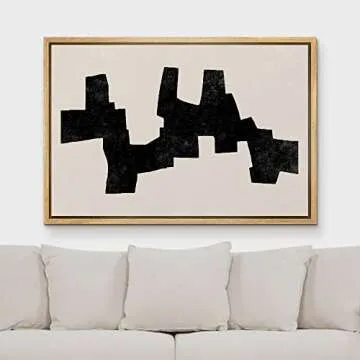 MUDECOR Framed Canvas Print Wall Art Geometric Mid-Century Dark Black Polygon Abstract Shapes Illustrations Minimalism Decorative Bohemian Nordic for Living Room, Bedroom, Office - 24"x36" Natural