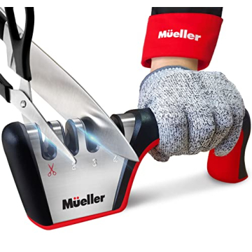 Introducing the Mueller 4-in-1 Kitchen Knife Sharpener, your ultimate companion for maintaining the sharpness of all your knives and scissors! This sleek, ergonomic tool features a four-stage sharpening system designed with 100% fine diamond abrasives, swiftly reshaping dull edges and ensuring superior performance. Unlike traditional whetstones and bulky sharpeners, the Mueller offers an effortless sharpening experience suitable for both kitchen knives and a variety of cutting...