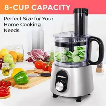 Mueller Ultra Prep Food Processor Chopper for Dicing, Slicing, Shredding, Mincing, and Pureeing, Food Chopper for Vegetables, Meat, Grains, Nuts, 8 Cup, Silver