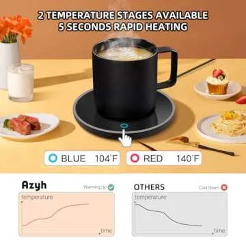 Show more If you’re tired of cold coffee or tea ruining your mood during the day, look no further than this exceptional coffee warmer with dual temperature settings. Designed for enthusiasts of hot beverages, this innovative product from a leading kitchenware brand promises to keep your drinks at the perfect warmth, bringing convenience right to your desk. Featuring two heat settings, 104℉/40℃ and 140℉/60℃, indicated by a blue and red light respectively, this warmer is ideal for maintaining the temperature of your favorite drinks without boiling them. Its auto shut-off feature ensures safety, automatically turning off after 8 hours of inactivity, giving you peace of mind whether you're in a meeting or simply lost in a great book.