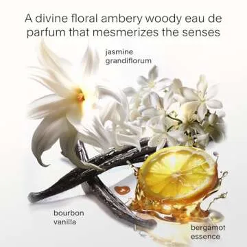 The main scent profile includes notes of Bourbon vanilla, Italian Bergamot, and Jasmine Grandiflorum, creating a floral and woody fragrance.