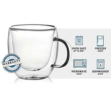 These mugs are tailored for both coffee aficionados and casual drinkers alike. With a generous capacity of 5.4 ounces, they can hold not just espresso but a variety of beverages including cappuccinos, lattes, and even refreshing juices without compromising on style. The double-wall construction ensures that hot drinks remain warm longer while keeping the exterior cool to the touch, adding to the overall comfort and enjoyment of your drink.
