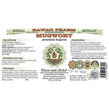 Show moreDiscover the herbal wonder that is our Mugwort Alcohol-Free Liquid Extract, meticulously crafted by Hawaii Pharm, USA. This organic Mugwort extract (Artemisia vulgaris) is designed for those seeking a natural way to enhance relaxation and promote vivid dreaming. Our extract stands out as a premium herbal glycerite, combining the finest natural ingredients to ensure a product that is both effective and safe. Sourced from certified organic or ethically harvested wild Mugwort, this extract embodies an authentic essence, perfect for your wellness journey.