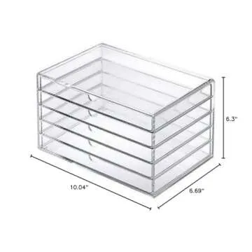 This acrylic organizer is a must-have for anyone looking to keep their beauty essentials or small collectibles in pristine order. Crafted in Japan, this storage solution is designed not only to be functional but also to add a touch of sophistication to your space. With five spacious drawers, it's ideal for holding cosmetics like lip glosses, liquid lipsticks, and costume jewelry.