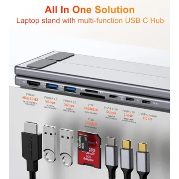 Show moreIntroducing the Mukiya USB-C Laptop Docking Station Stand, your ultimate travel companion and workspace enhancer. This versatile USB-C hub not only expands your connectivity options but also elevates your laptop to an ergonomic height for improved comfort and productivity. Designed for both macOS and Windows laptops, this docking station is equipped with a robust range of features to meet all your tech needs.