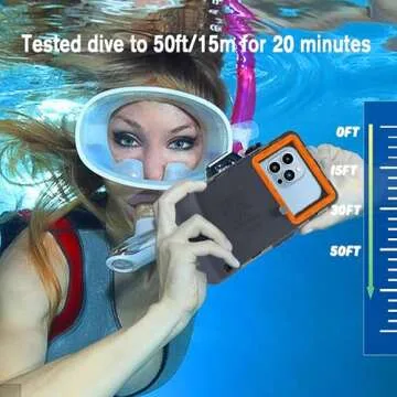 Show moreIntroducing the Mukoiber Latest Upgrade Universal Waterproof Phone Case—your ultimate companion for underwater adventures. Perfectly designed for snorkeling and diving, this innovative case is certified for IP68 waterproof protection, ensuring your device stays safe even at depths of 50 feet (15 meters) for up to 20 minutes. Constructed with a robust full-body design, it offers complete protection against water, shocks, and dust, making it ideal for various activities such as hiking, rafting, swimming, and beach excursions. The unique vent hole technology prevents air bubbles from forming inside the case, allowing you to take stunning underwater photos without a hitch while keeping your device fully operational.