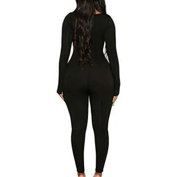 Show moreIntroducing the Mulisky Women's Sexy Long Sleeve Bodycon Jumpsuit Rompers, the ultimate addition to your wardrobe for an effortless blend of style, comfort, and versatility. Crafted from a premium blend of 83% Polyester and 17% Spandex, this one-piece outfit features a soft and stretchy fabric that ensures a flattering fit for a wide range of body shapes. The bodycon silhouette not only hugs your curves beautifully but also offers the flexibility needed for everyday movement. With a scoop neck and long sleeve design, this jumpsuit is designed to make a statement whether you’re at a club, a dinner party, or simply out on a casual day.