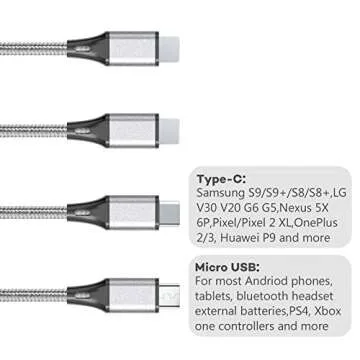 Multi Charging Cable, USB Cable 3A 4FT Nylon Braided Universal 4in1 Charger Adapter Type-C/Micro Port, Compatible with Cell Phones and More (Silver, 2Pack)