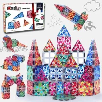 Show more Multi-Colored Magnetic Tiles - Ignite Your Child's Creativity! Welcome to a vibrant playground of imagination with our new 2024 STEM building blocks set designed for kids ages 3-10+. These magnetic tiles come in a plethora of bright colors and patterns that are sure to captivate young minds. Each tile is made to last and features strong magnets that ensure safe and stable construction. Whether your child is crafting a dazzling castle, forming structures in 3D, or exploring geometric creations, this tile set opens the door to infinite possibilities of creativity.