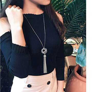 Multi Link Tassel End Statement Y Necklace Knot Snake Chain Neck Pendant for Lady
