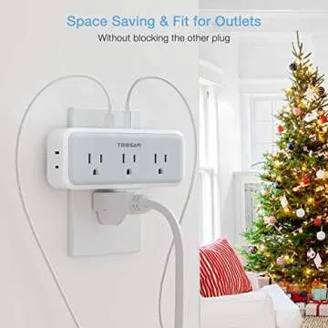 Multi Plug Outlet Extender, USB C Wall Charger, TESSAN Wall Plug Splitter with 5 Outlets and 3 USB, Electrical Power Expander with Surge Protector Spaced for Home Office Dorm Room