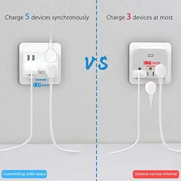 Multi Plug Outlet, USB Wall Charger Outlet Extender with High Speed 2.4A 2USB 3AC Outlets No Surge Protector Travel Power Strip, Outlet Splitter Cruise Ship Accessories Plug Extender(Gray)