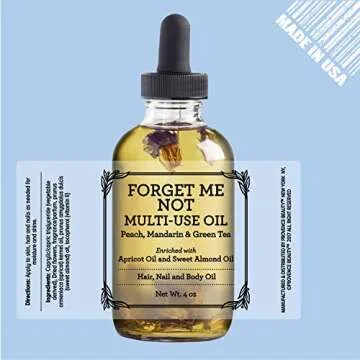 Multi-Use Oil for Face, Body and Hair - Forget Me Not - Organic Blend of Apricot, Vitamin E and Sweet Almond Oil Moisturizer for Dry Skin, Scalp and Nails - Peach, Mandarin and Green Tea - 4 Fl Oz