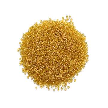 If you are on the lookout for a versatile crafting staple, you'll adore these Gold Silver-Lined Glass Seed Beads. Perfect for stick pins, napkin rings, candle holders, and more, these beads are not just visually appealing; they are a statement of elegance in your crafting projects.
