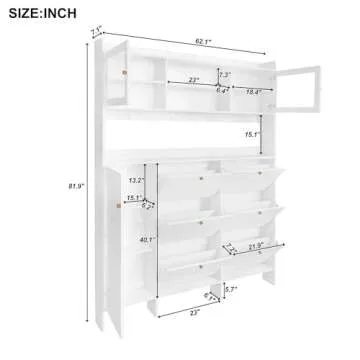 Multifunctional Shoe Cabinet with Storage Shelf & 6 Flip Drawers, Modern Large Hall Tree with Tempered Glass Doors, Elegant Foyer Cabinet with 4 Hooks for Hallway, White