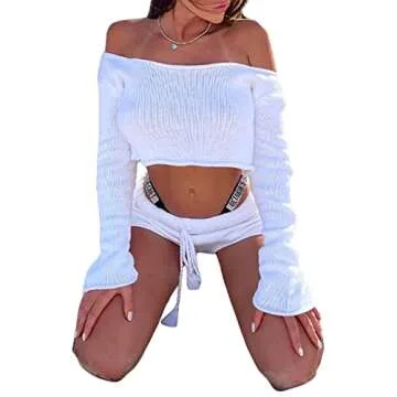 Stylish Multitrust Women Two Piece Matching Knit Lounge Set - Summer Crop Tops with High Waist Shorts