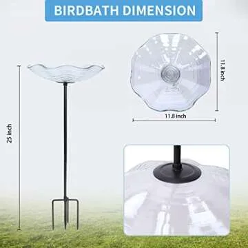 MUMTOP Outdoor Bird Bath - Stylish Glass Bowl with Metal Stake for Ideal Garden Decor