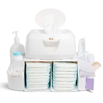 While the wipe warmer isn't included, rest assured that this stylish organizer syncs flawlessly with the Munchkin Warm Glow Wipe Warmer, adding an extra layer of comfort for your baby during each diaper change. Made from durable, easy-to-clean materials, the Munchkin Tabletop Organizer effortlessly blends function with aesthetics, making it a chic addition to any nursery setting.