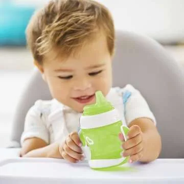 With its ultra-flexible spout, your baby can tilt and sip at their leisure without any discomfort. Available in vibrant shades of bright green or light green, this cup catches the eye of every little one. The removable handles are ergonomically designed for tiny hands, facilitating a secure grip and boosting self-feeding skills. It's a delightful transition from bottles, designed to accommodate children aged 4 months and up. Rest easy knowing that this cup is BPA-free, providing a safe drinking experience.