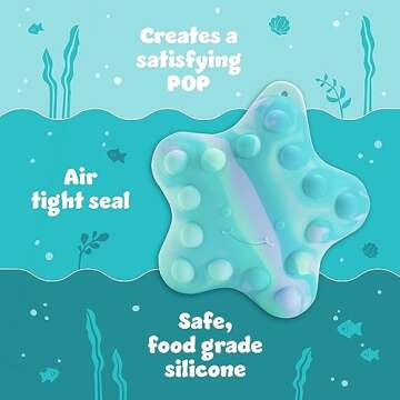 Show more Introducing the delightful fidget-style bath toy designed in an adorable starfish shape, perfect for engaging young toddlers during their bath time! This innovative product is not just a toy; it's a tool for development that enhances fine motor skills and hand-eye coordination. Crafted from 100% food-grade silicone, it ensures safety and durability, allowing little hands to manipulate and ‘pop’ the bubbles with ease.