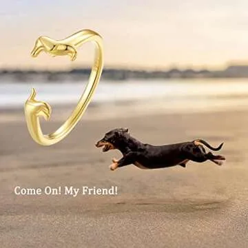 MUNDELL 925 Sterling Silver Cute Dachshund Rings Golden Puppy Dog Rings for Women Animal Rings Stacking Ring Statement Ring