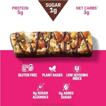 Designed to fit into various lifestyles, these bars are gluten-free, plant-based, and Keto certified. With only 150 calories and just 3g net carbs per serving, they are a perfect fit for quick breakfasts, midday snacks, or even as a small meal replacement. Plus, they contribute to a sense of fullness thanks to their 5g of plant-based protein and 4g of fiber.