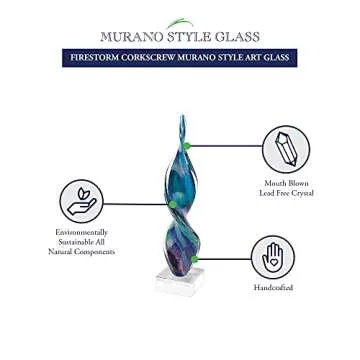 Show moreElevate your decor artistry with the stunning Murano Style Art Glass Firestorm Design centerpiece. Standing at an impressive height of 18 inches, this exquisite glass sculpture fuses traditional craftsmanship with contemporary design. Handcrafted from the finest mouth-blown glass, each piece displays unique variations that not only add charm but also convey the artisan's dedication to quality. Complemented by a chic crystal base, it captures the captivating hues reminiscent of ocean waves, making it an ultimate statement piece for any room.