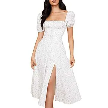 Introducing the Murfhee Women's Elegant Floral Print Puff Sleeve Ruched A-Line Split Party Long Maxi Dress, a stunning ensemble that perfectly embodies femininity and grace. Crafted from premium quality fabric, this dress promises comfort and style for any occasion. The enchanting floral print adds a touch of whimsy while the puff sleeves create a delightful vintage vibe. The thoughtful ruched design accentuates your figure in all the right places, offering a flattering silhouette that will...