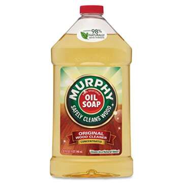 Show moreIntroducing the Murphy Oil Soap Original Wood Cleaner, a trusted choice for maintaining the beauty of your wooden surfaces. This premium cleaner is designed specifically for wood, providing a deep clean without the harsh chemicals that can damage your beloved furniture and flooring. With a 32 oz. liquid bottle, it is perfect for delivering optimal results with just a few simple steps. Its gentle yet effective formula not only cleans but also conditions wood, preserving its natural luster and extending its life. Whether you are looking to restore an antique piece or maintain the finish of your modern furniture, Murphy’s Oil Soap is your go-to solution for caring for wood surfaces. Say goodbye to dull and lifeless wood, and hello to a radiant, clean finish that showcases the natural beauty of your furnishings!