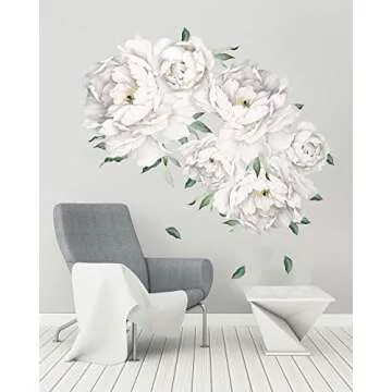 Murwall White Peony Wall Stickers Floral Decals for Bethroom Kitchen