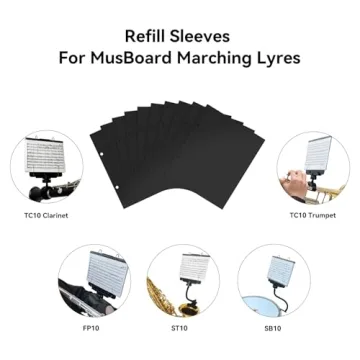 When compared to other marching lye replacement sleeves in the market, the MusBoard FPG10 stands out primarily due to its exclusive compatibility with MusBoard marching lyres, eliminating concerns about fit. The double-sided feature allows holding twice the amount of music, making it more efficient than many single-sided options available. Other brands might offer similar capabilities but often fall short in quality or durability, making MusBoard the preferred choice among serious musicians seeking reliability and performance.