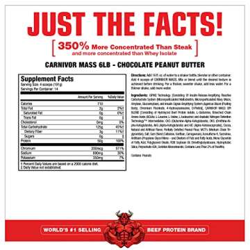 MuscleMeds CARNIVOR Mass Gainer Beef Protein Isolate Shake, 50 Grams Protein, 125 Grams Carbs, 0 Fat, 0 Sugar, Lactose Free, Halal Certified, Chocolate Peanut Butter, 6 Pound