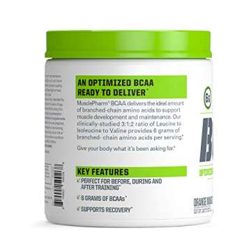 MusclePharm Essentials BCAA Powder, Post-Workout Recovery Drink, Orange Mango, 30 Servings